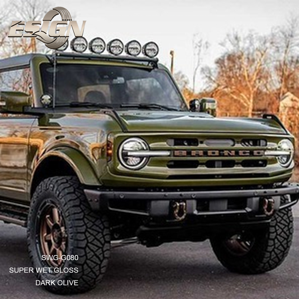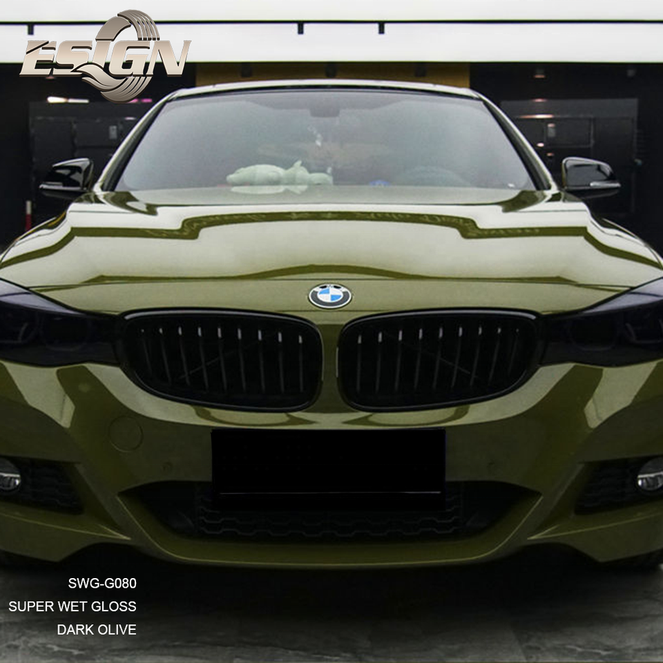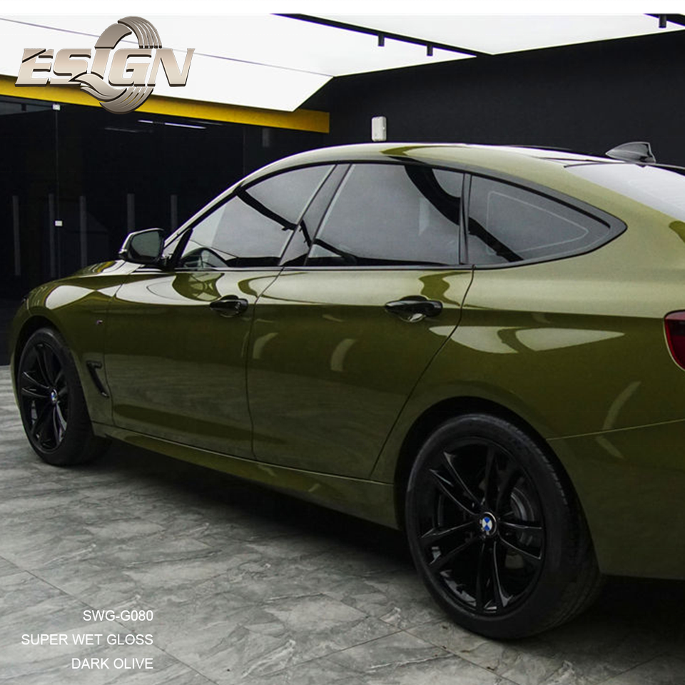 Film de protection de voiture en vinyle CRYSTAL GLOSS DARK OLIVE, autocollants de voiture, style léopard, anti-rayures, matériau PET, changement de couleur