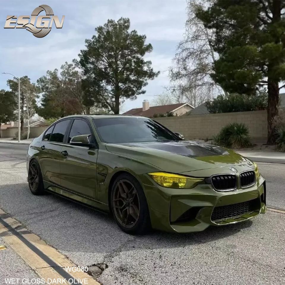 CRYSTAL GLOSS DARK OLIVE Nouvelle Arrivée Vinyle d'emballage de voiture 5ft X 59ft Full Roll Size Film auto-adhésif Crystal Green Auto Foil