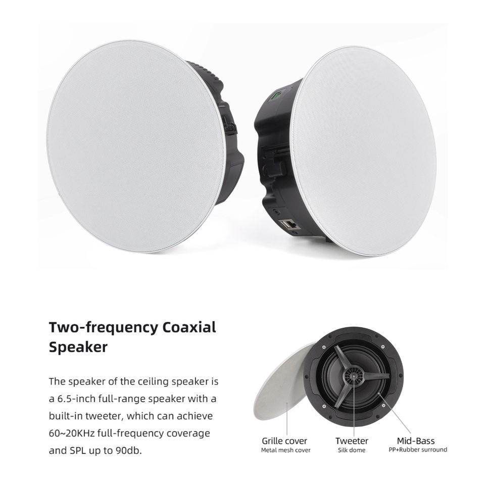 Haut-parleur sans fil encastré au plafond CS-2 | Système stéréo 60W avec WiFi double bande et contrôle via les applications AirPlay 5.4, DLNA, Spotify, Tidal