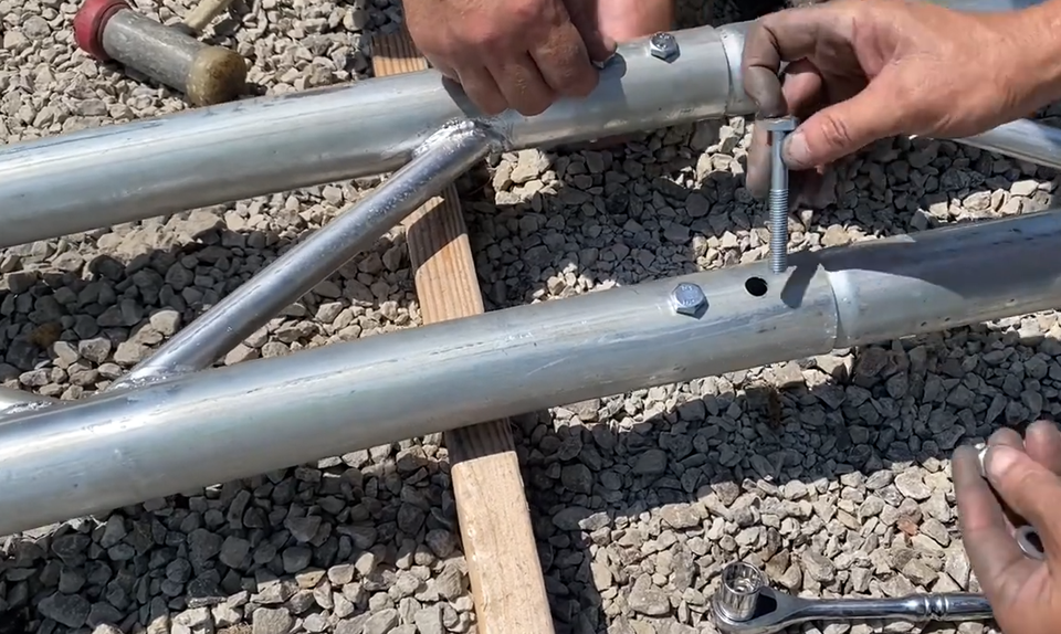 Tubes en acier, Revêtement en tissu, Ancrages, Pieds à planter