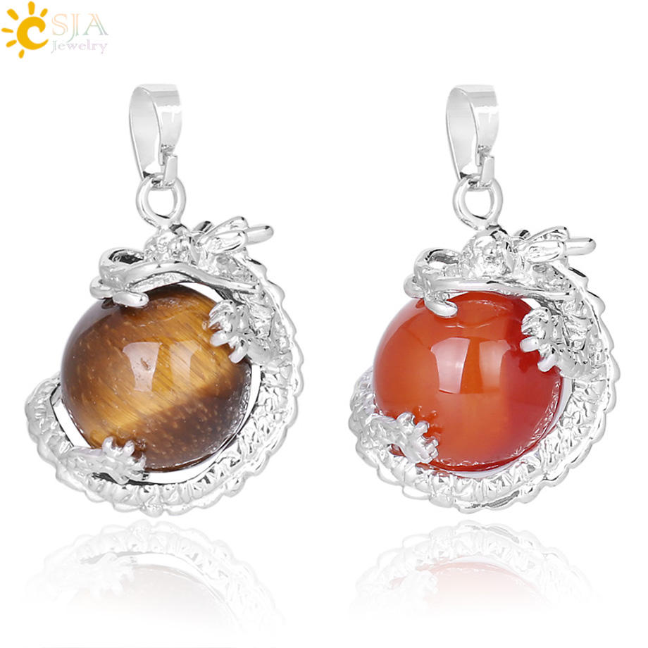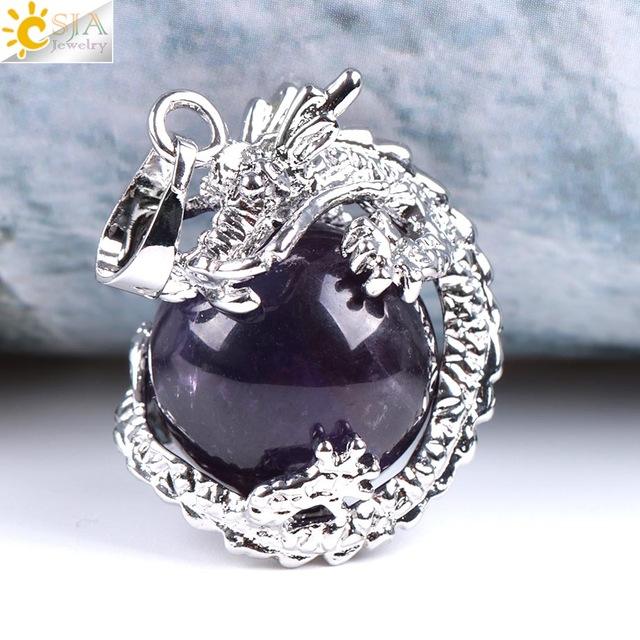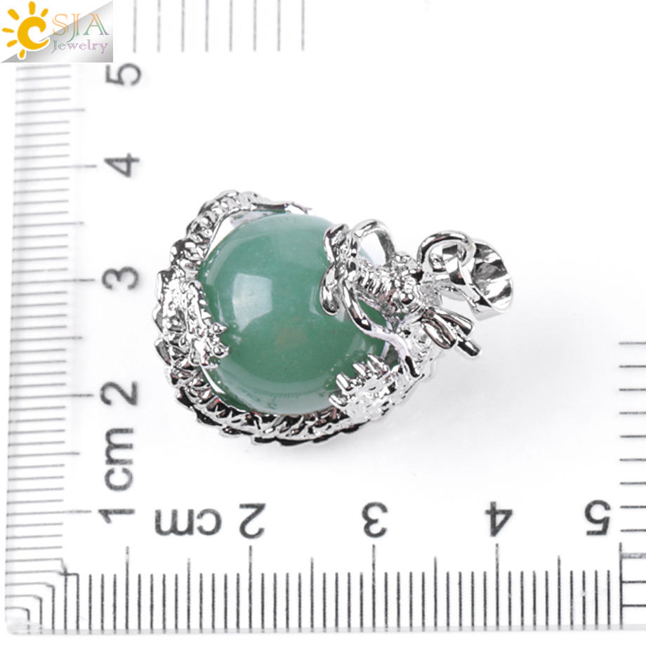 CSJA couleur argent chaud Dragon enveloppé de pierre de cristal de guérison naturelle Quartz Rose boule ronde pendentif breloques E852
