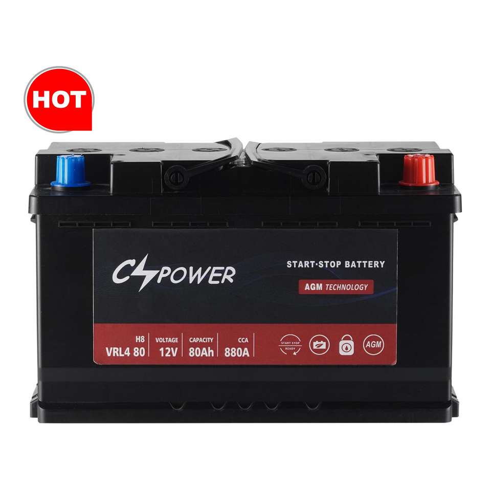 Batterie de voiture CSPower Start Stop 6-QTF-80 12V 80Ah AGM VRL4 80-H7 CCA 800 140 Capacité de réserve Rechargeable