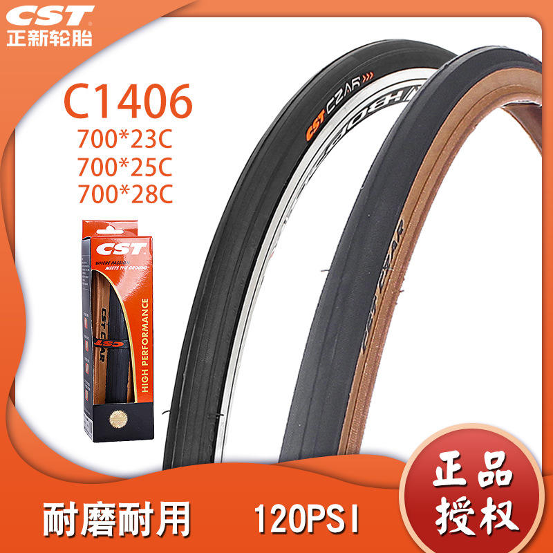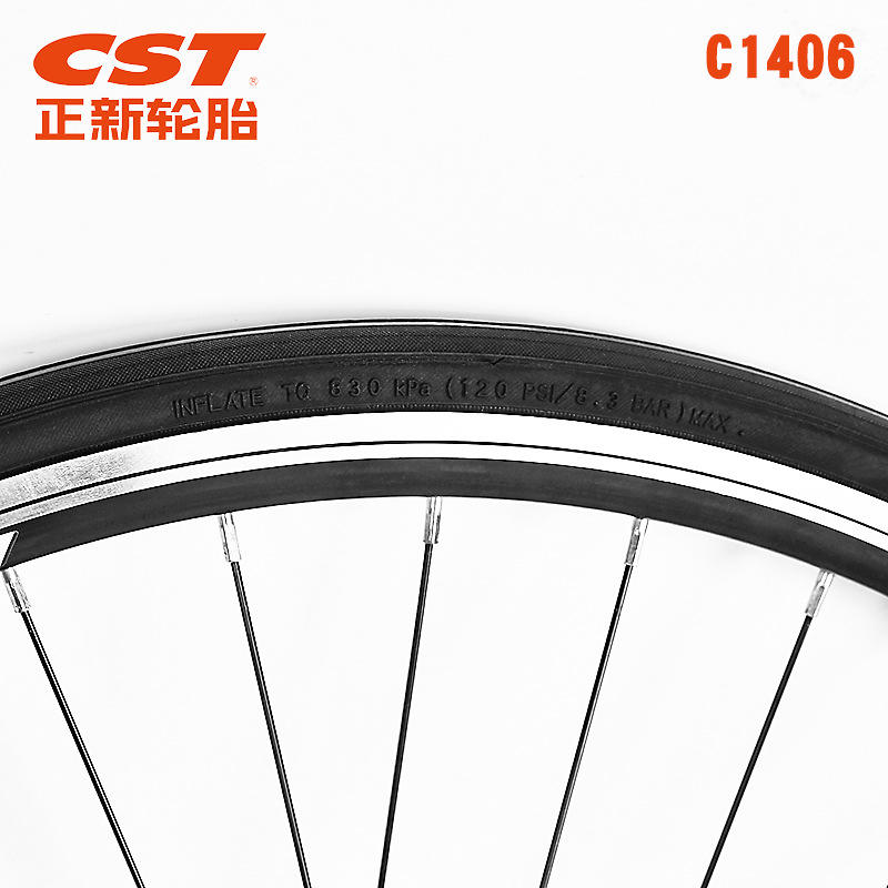 Pneu de vélo CST Cheng Shin 700c 23-28C pour vélo de route, slick, course, durable, avec chambre à air à talon métallique