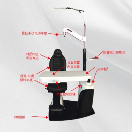 Chaise d'optométrie électrique CT-500, 101x109x121mm, pour l'examen de l'acuité visuelle, équipement de placement