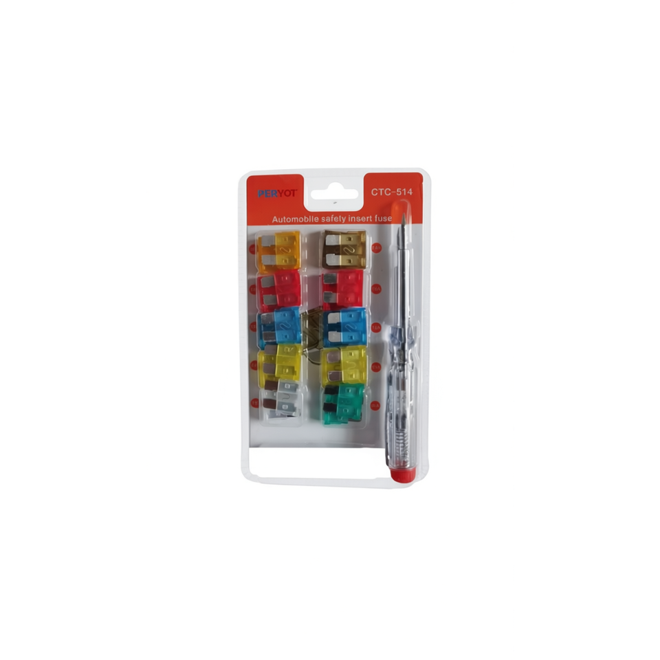 Extracteur de fusibles moyen CTC-514 et testeur de tension 12V 21 pièces type lecteur de code