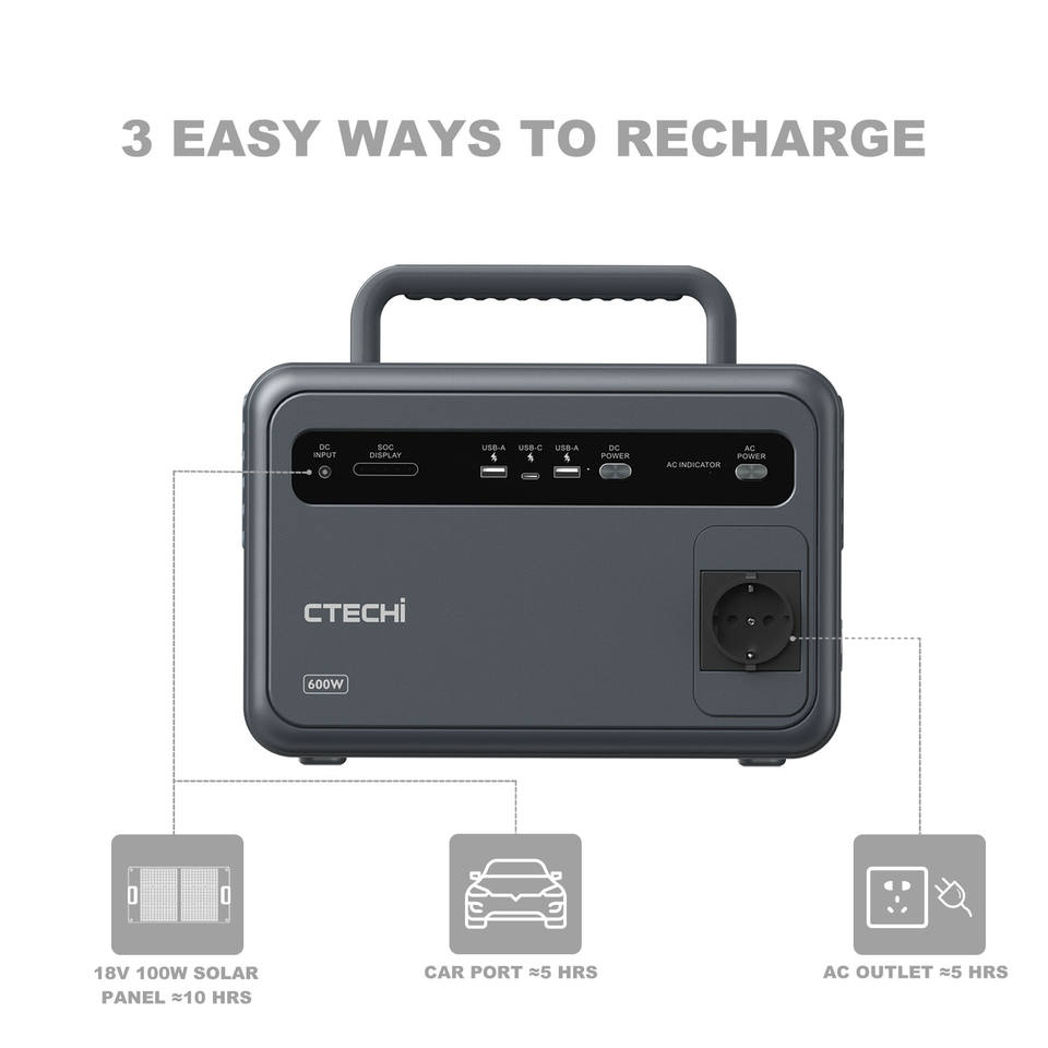 CTECHI 600W Générateur solaire tout-en-un à onduleur électrique au lithium LiFePO4, système de station d'alimentation portable pour la maison