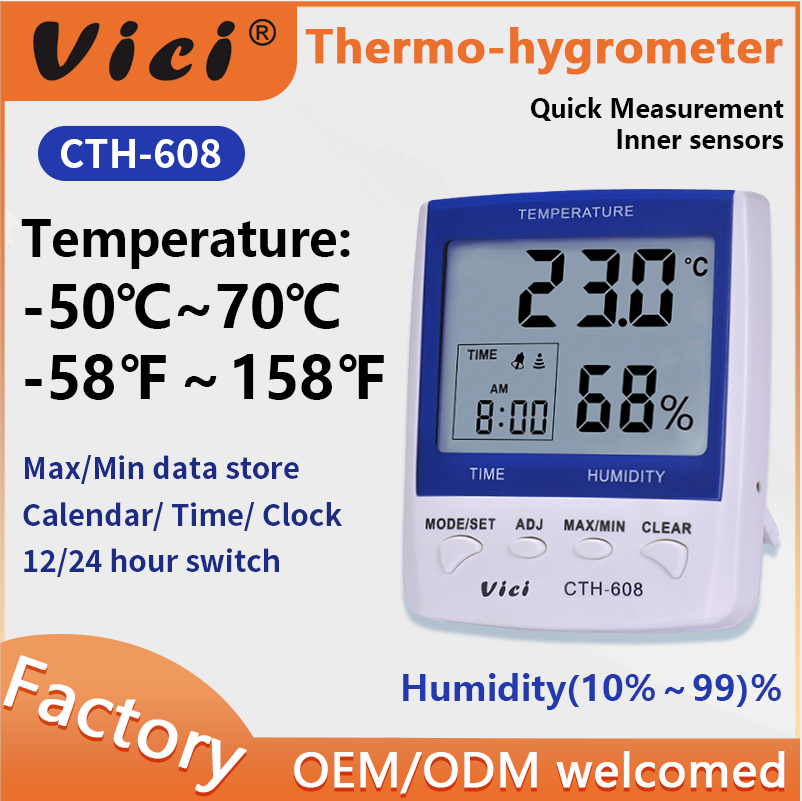 Thermomètre hygromètre numérique CTH-608 pour incubateur, laboratoire et hôpital