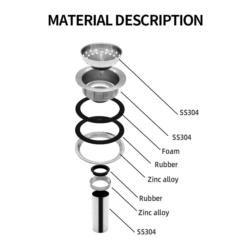 Certification CUPC, bouchon de vidange d'évier de cuisine de 4,5 pouces, filtre et bouchon d'évier de cuisine en acier inoxydable, panier filtrant pour évier de cuisine avec queue