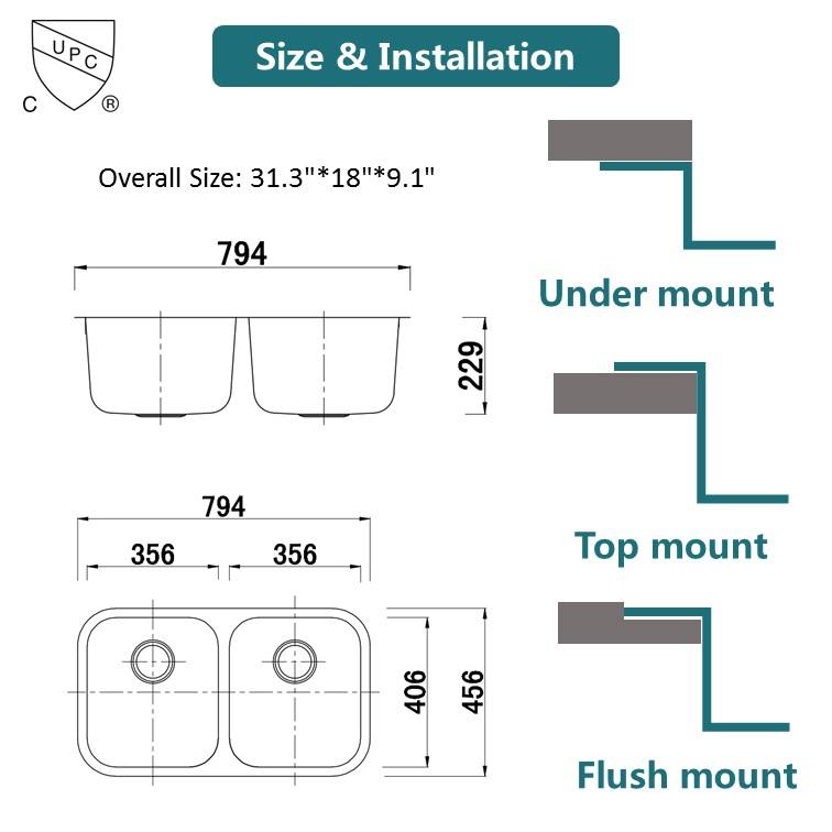 Installation:Sous le bâti/Undermount/sous le compteur/Undercounter
