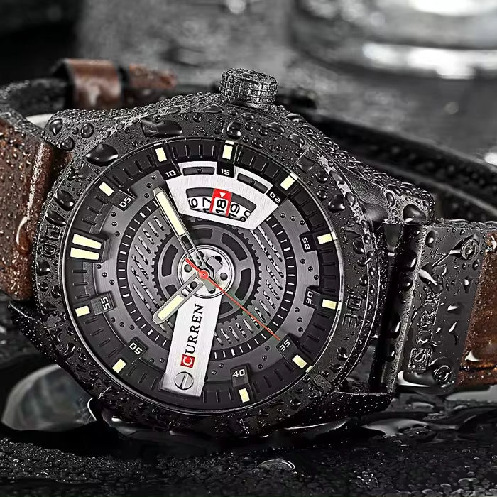 CURREN 8301 Montre de sport à quartz pour homme avec bracelet en cuir Affichage de la date Montre-bracelet décontractée étanche pour le travail et l'extérieur
