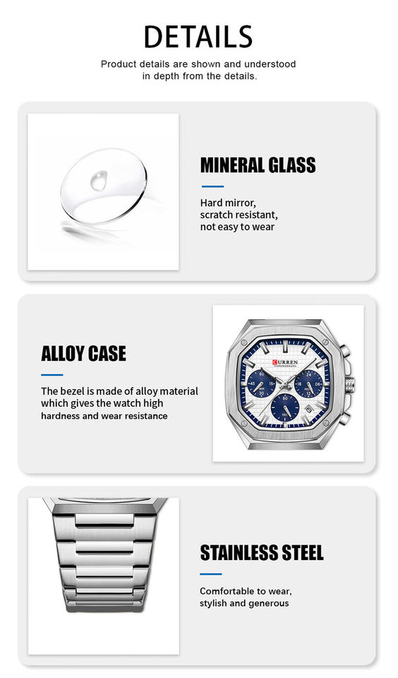 Feature:Waterproof, Water Resistant, Auto Date, Complete Calendar, chronograph, Day/Date