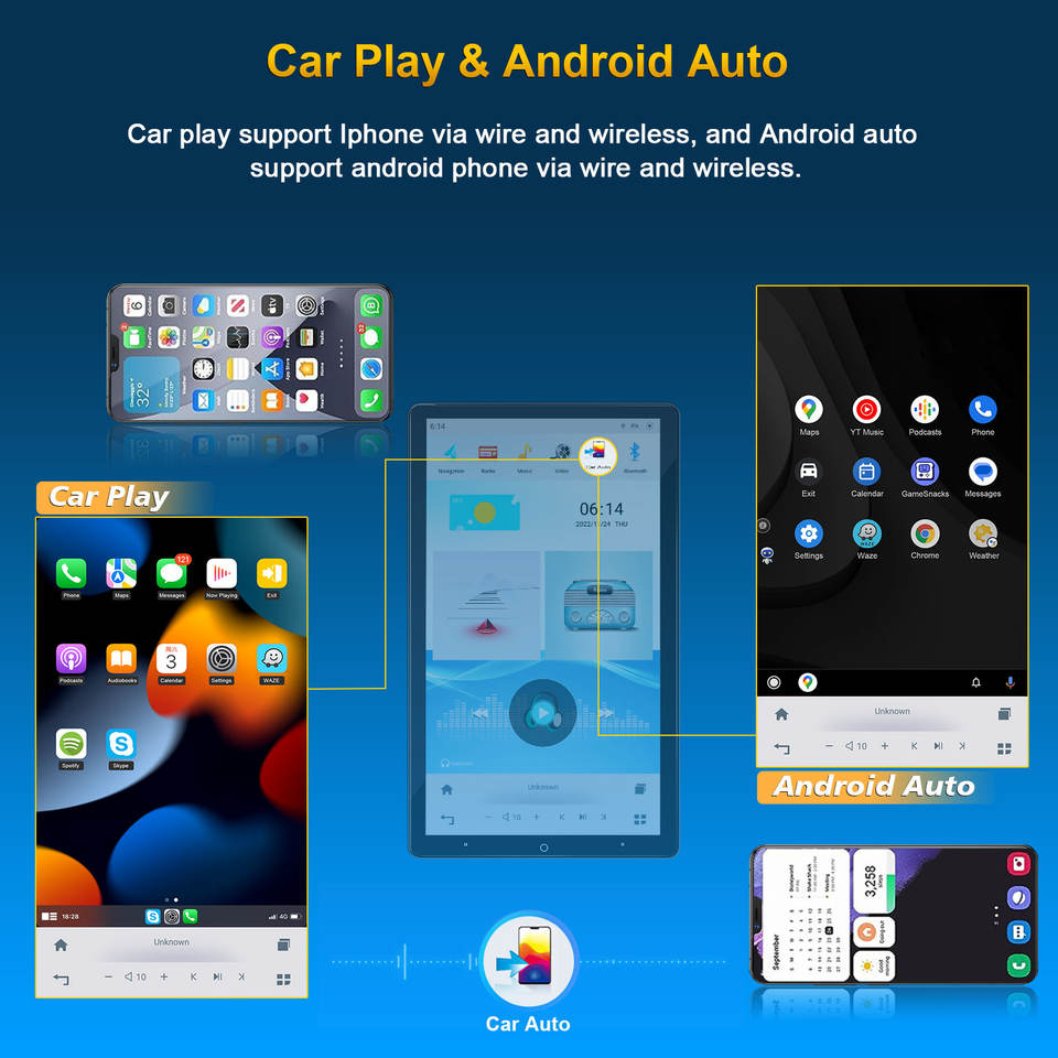 CUSP Universel 13,6 pouces Écran IPS électronique réglable sur le panneau avant Autoradio Android avec navigation GPS et prise en charge CarPlay