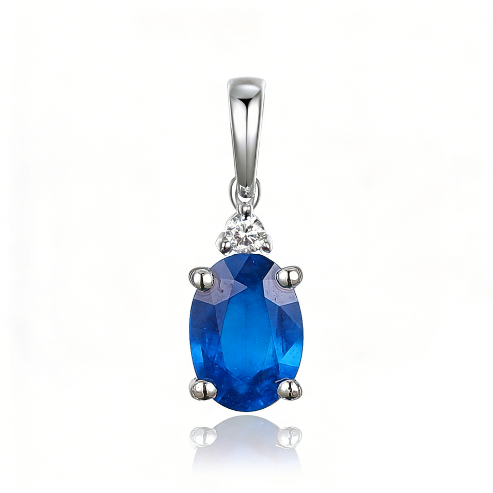 Pendentif classique personnalisé en or massif 14K avec saphir de laboratoire, serti griffe, ovale, pierre de naissance de septembre, pour cadeau de fiançailles, style pull