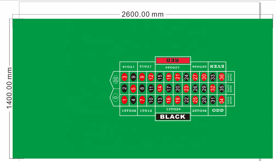 Nappe de table de mise en page de roulette "0" "00" sur mesure pour casino