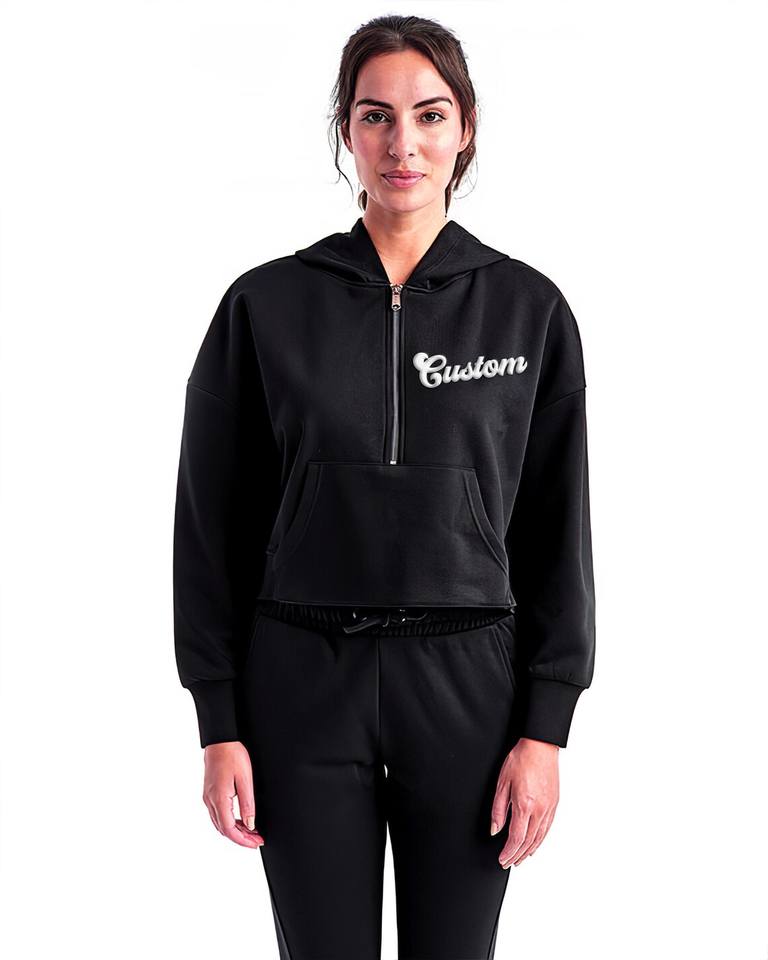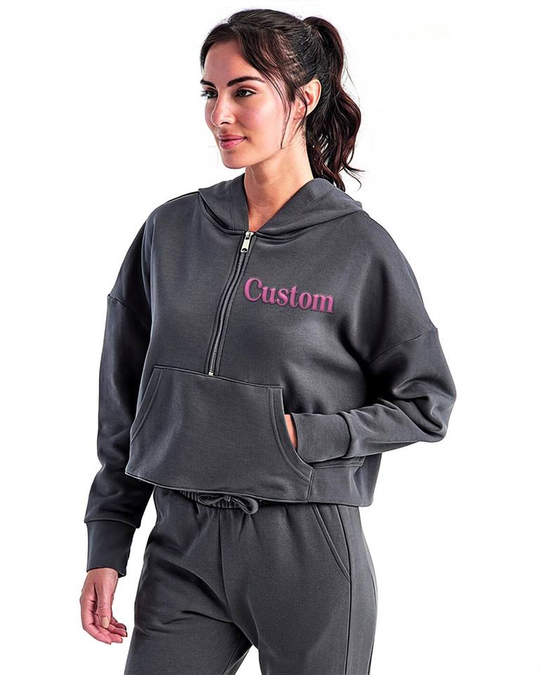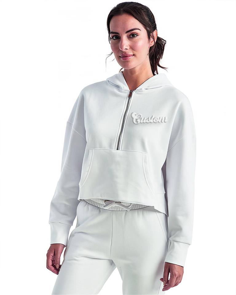 Sweat-shirt à capuche court pour femme, personnalisé avec impression en relief, 100% coton molletonné, écologique, coupe-vent, pour l'hiver