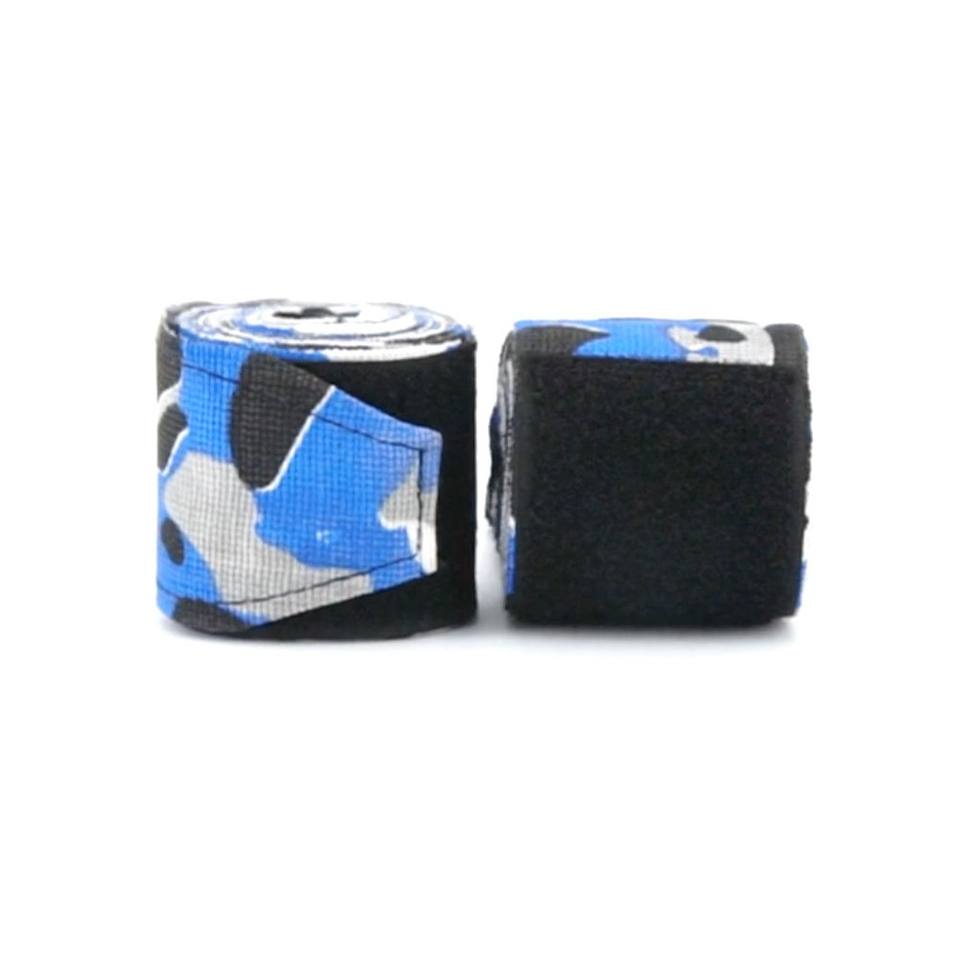 Demande client par SKT # Bandages de boxe 495, fabrication OEM à bas prix, coton bleu et nylon, protection durable et respirante