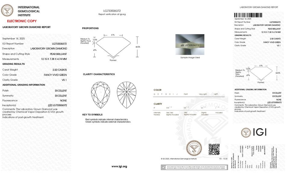 Numéro de Type:Pear CVD 2.50 CT. Fancy Vivid Green-VS1