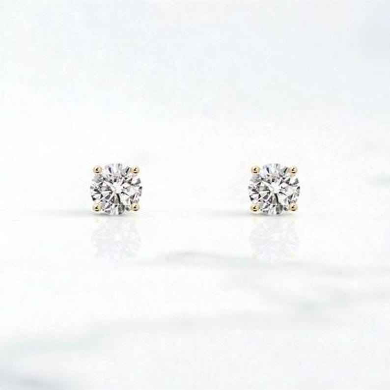 Boucles d'oreilles puces avec diamants de laboratoire, taille ronde