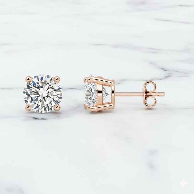Design: Boucles d'oreilles puces avec diamants de laboratoire, taille ronde