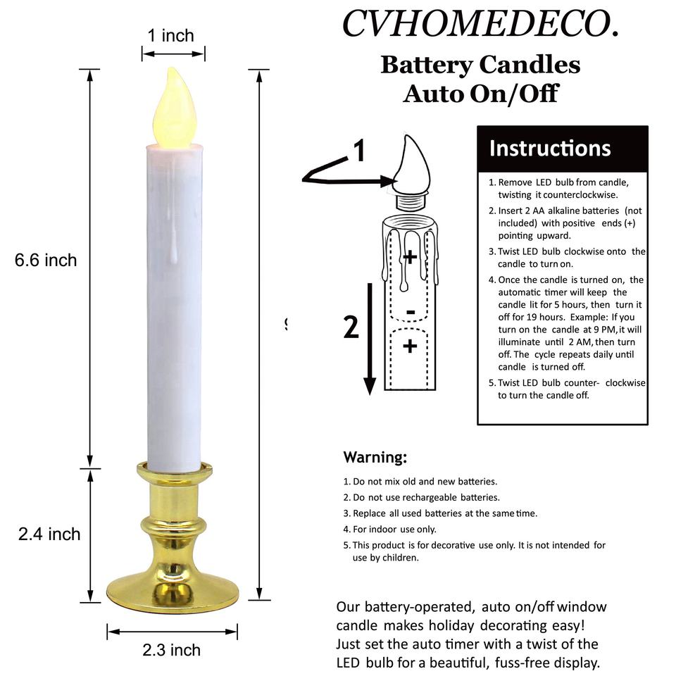 CVHOMEDECO. Bougies de fenêtre avec ventouses, cône LED à piles, marche/arrêt automatique, base dorée amovible, orange chaud (lot de 2)