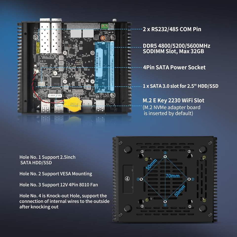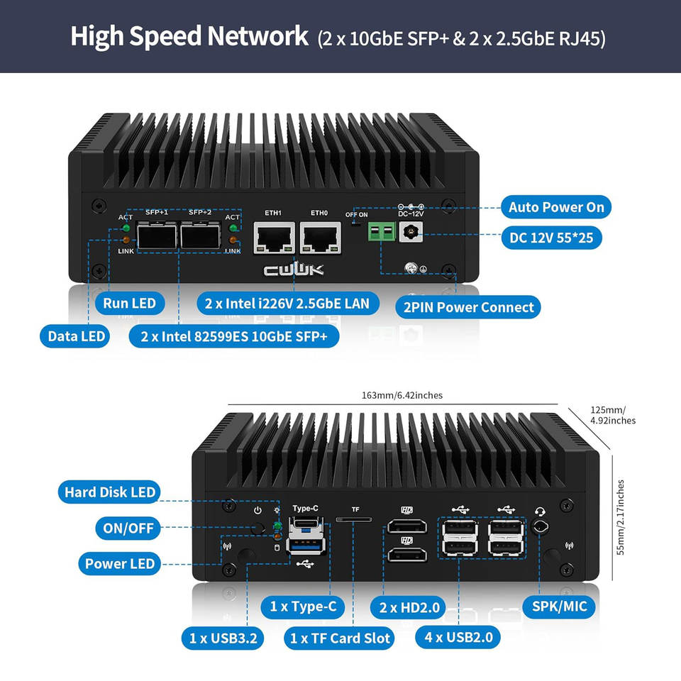 Mini PC pare-feu CWWK S8 N355 N150 N100 N305 avec 2x 10GbE SFP+ 2x I226-V 2.5GbE LAN DDR5 RAM/SSD Appliance OPNsense Micro PC