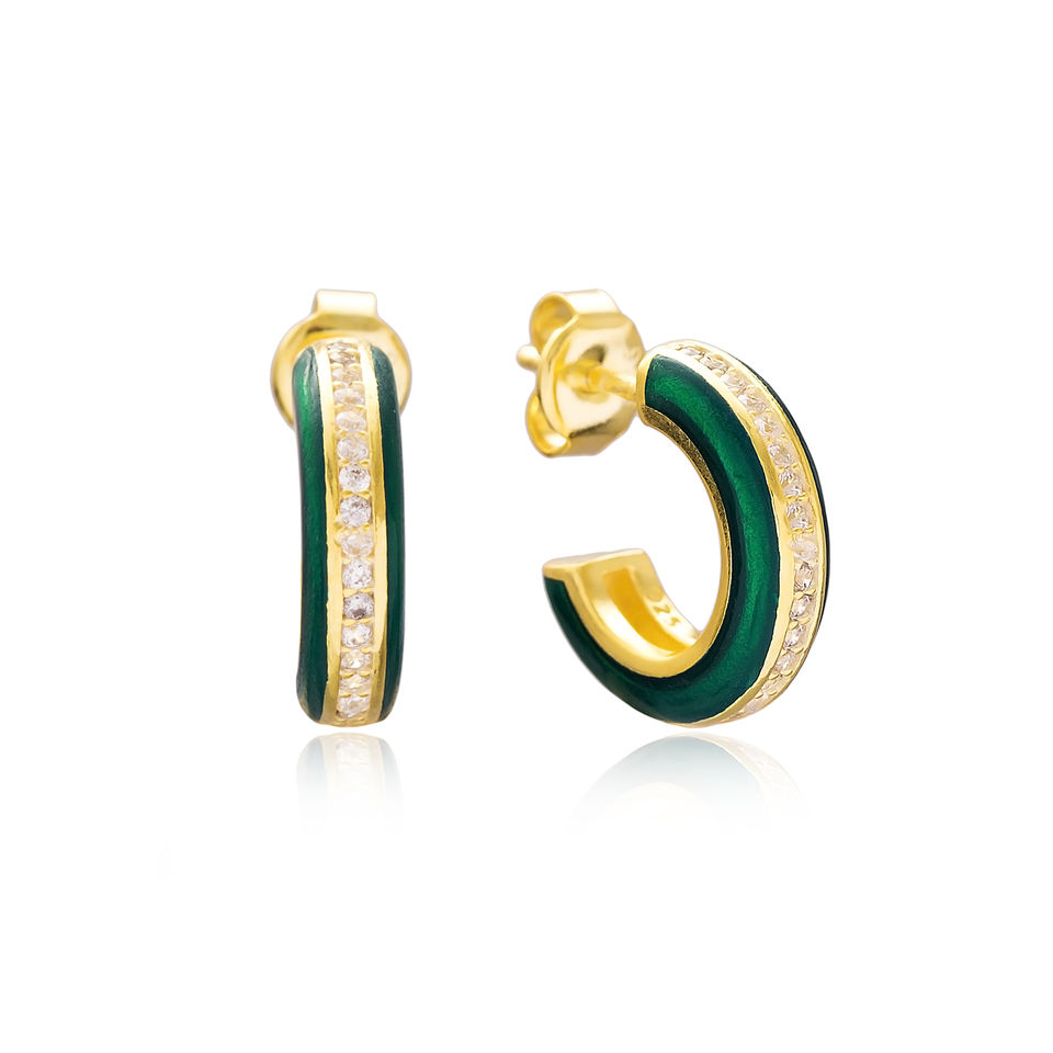 CZ 14 mm Minimal Vert Foncé Émail Boucles D'oreilles Fabriquées À La Main En Gros 925 En Argent Sterling Turc Fine Jewelry