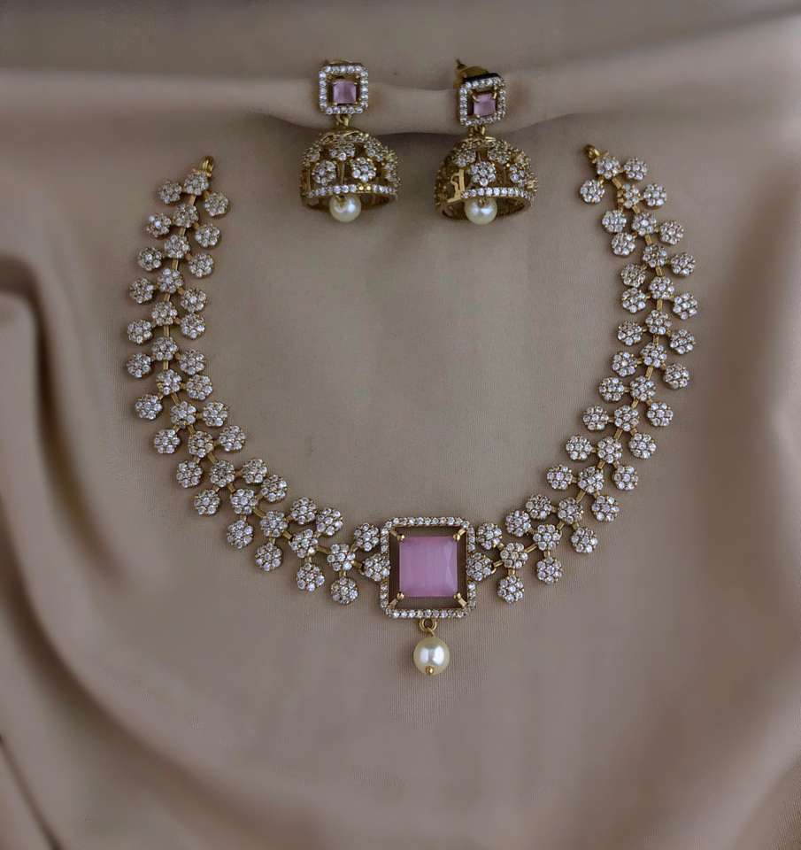 CZ Minimal Luxury Necklace Set pour femmes Matte Finish Brass Jewelry for Party Wear and Festive Occasions