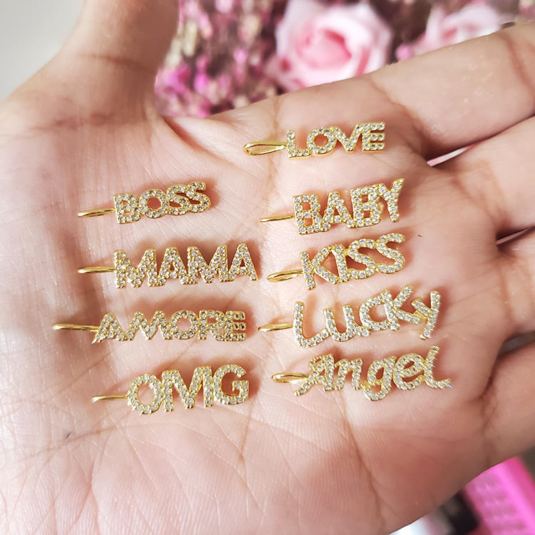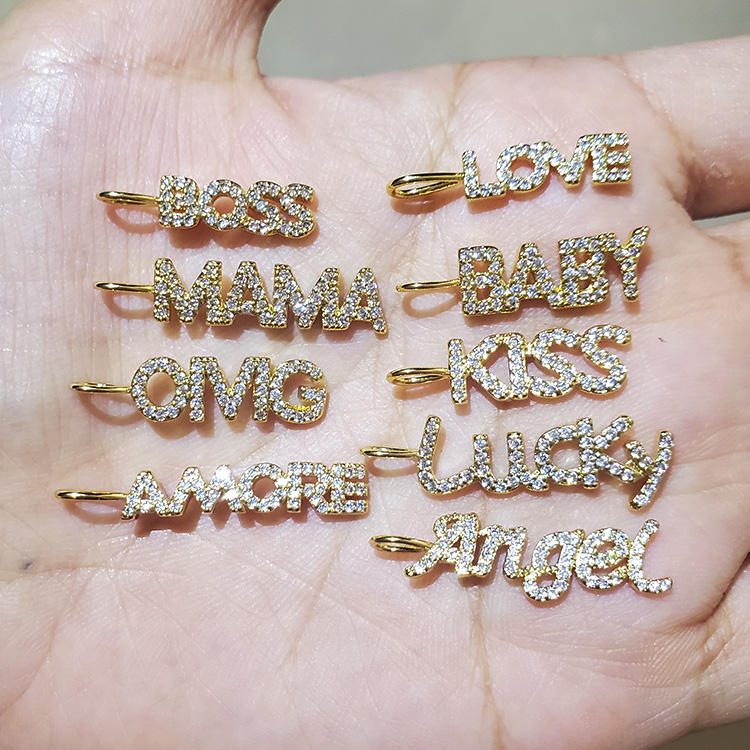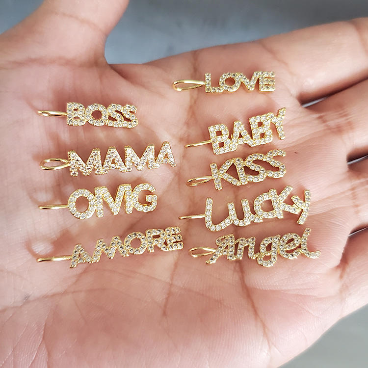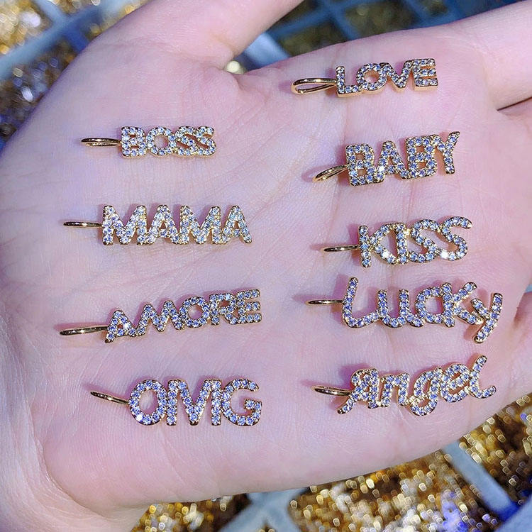 CZ8111 New Dainty Diamond CZ Micro Pave Letter Words Baby Boss Lucky Love Mama Charms for Jewelry Making