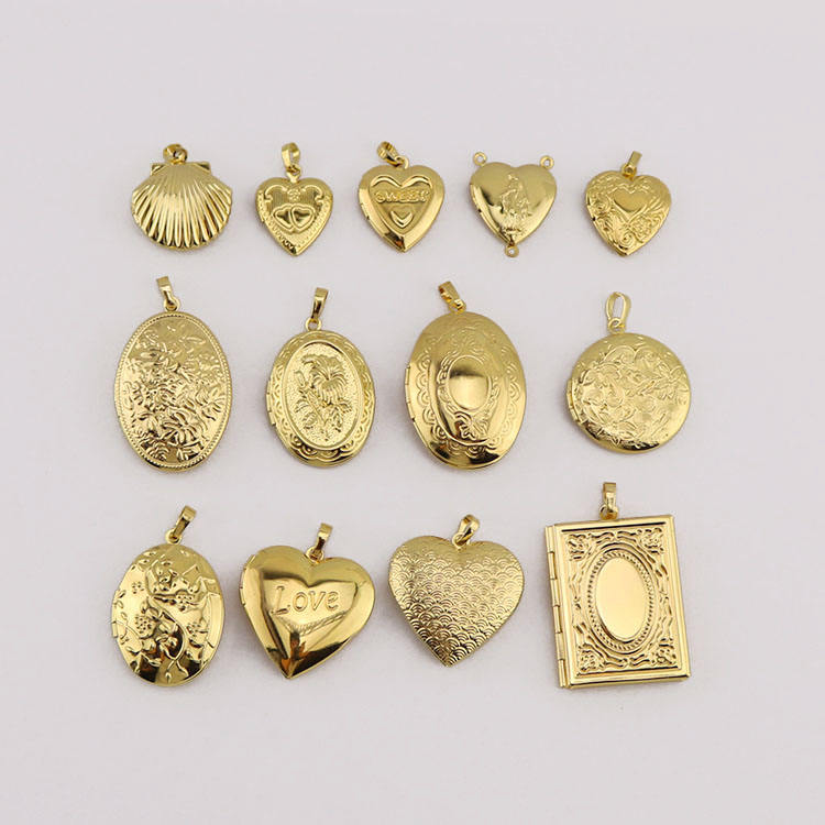 Yoya Jewelry Médaillon photo vintage plaqué or 18K sur laiton, forme cœur ovale, message secret, zircone cubique AAA, 20 pcs, CZ8776