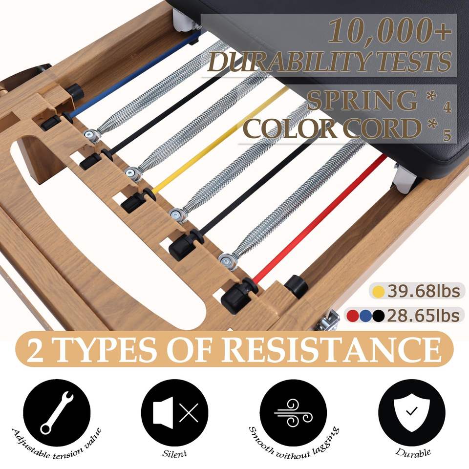 CZFIT Y005 Reformer de Pilates pliable en chêne massif pour la maison - Portable, durable, certifié CE, ressorts réglables, pour la santé et le renforcement musculaire