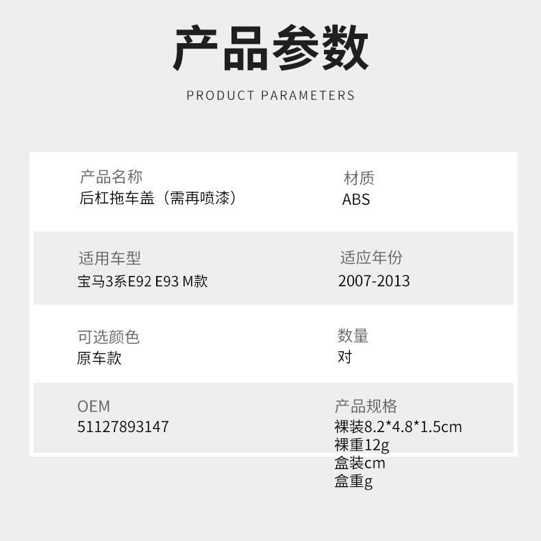 CZPINCHEN Cache-prise de remorquage pour pare-chocs arrière BMW Série 3 E92 E93 2007-2013 Modèles M Accessoire en plastique