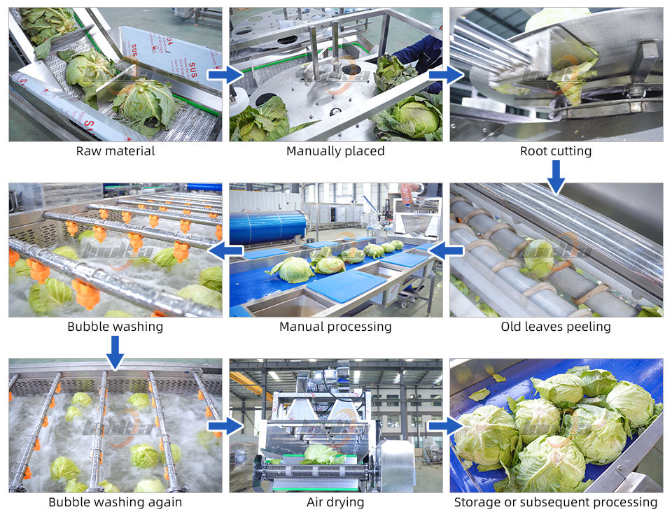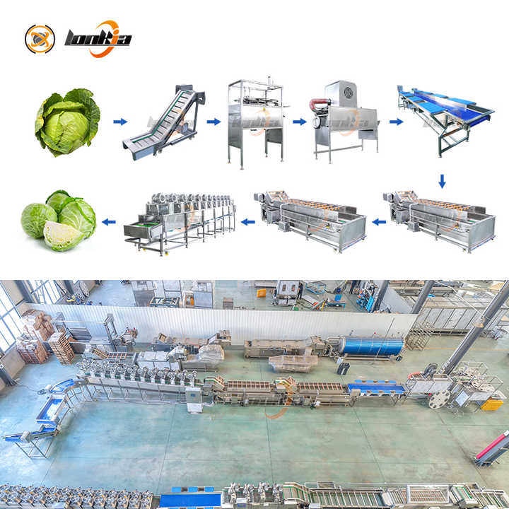 Machines de traitement du chou : Coupe-chou à taille réglable, Ligne de lavage et d'épluchage du chou
