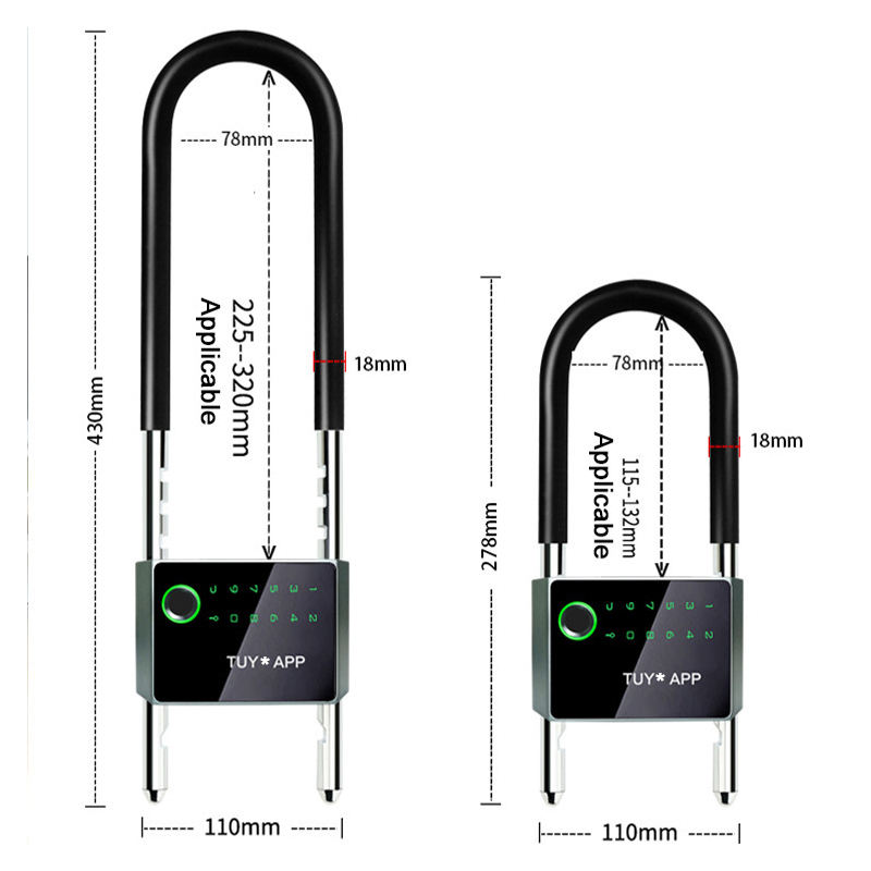 Nom du produit:Serrure de porte en verre intelligente en forme de U avec mot de passe d'empreinte digitale