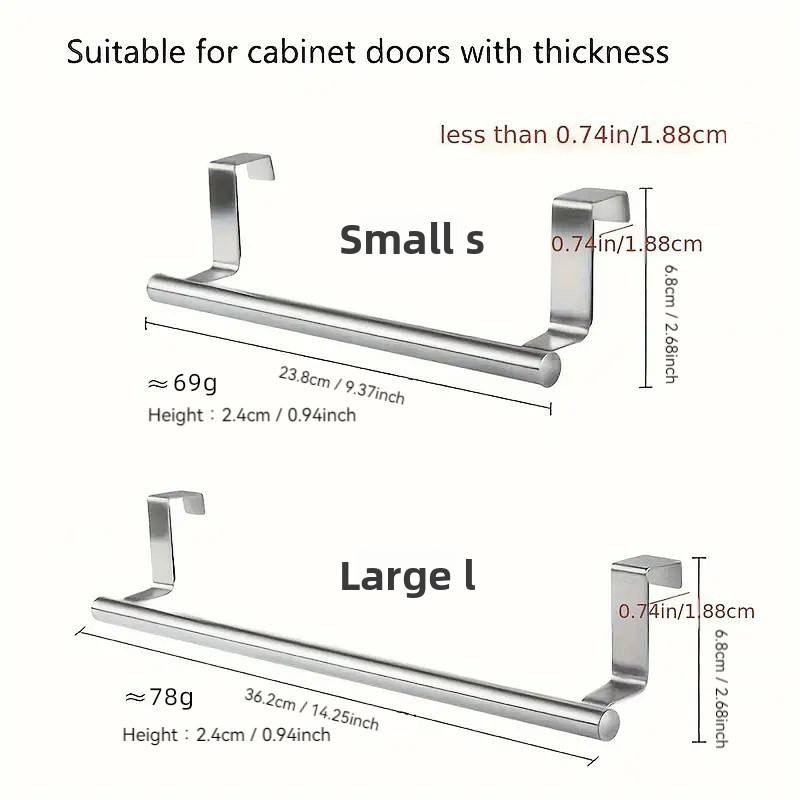 Porte-serviettes de porte d'armoire en acier inoxydable, barre porte-serviettes universelle à fixer sur les portes d'armoires et placards