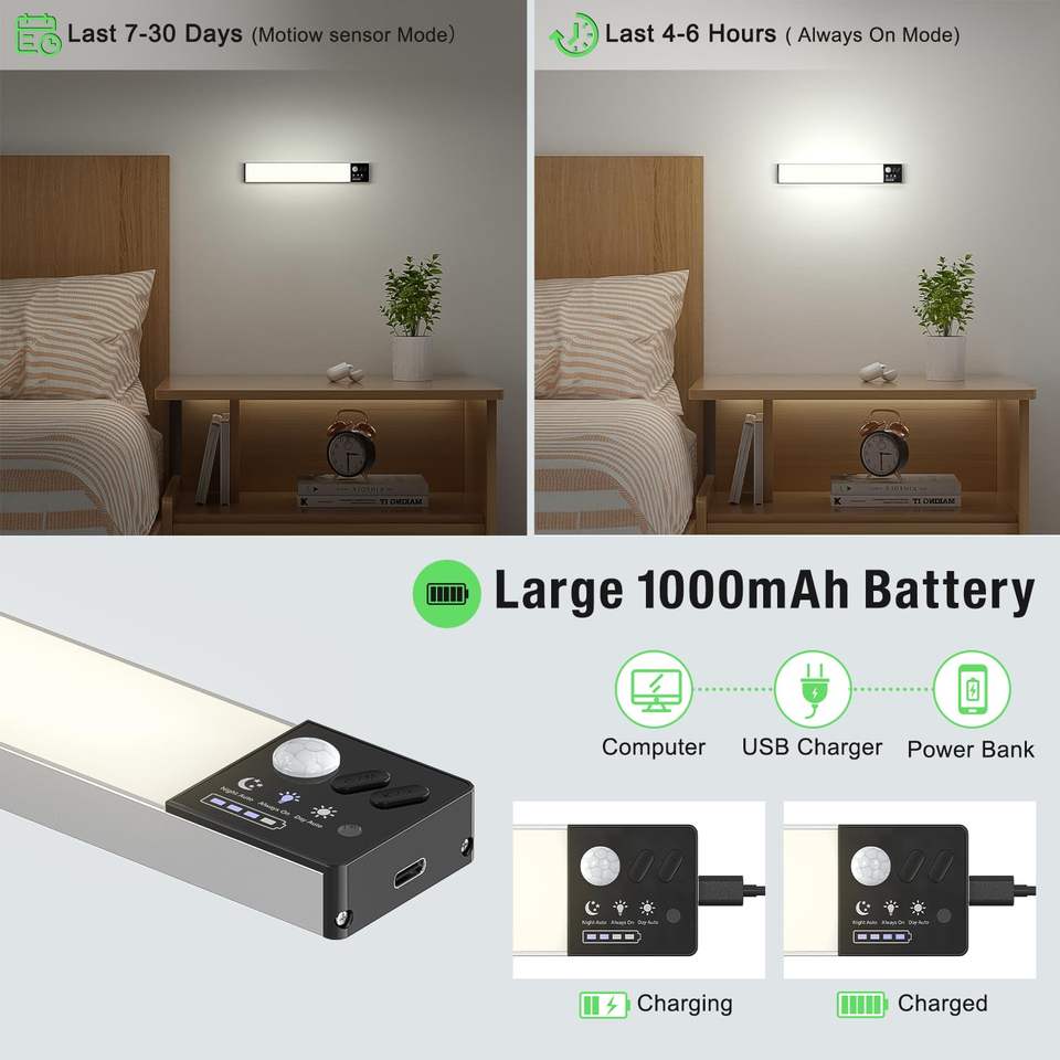 Station de charge LED pour armoire, 3 températures de couleur, rechargeable, à intensité variable, avec détecteur de mouvement, installation magnétique, portable, pour intérieur