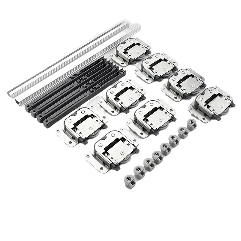 Aluminum Alloy Cabinet Sliding Door Pulley Concealed Track Two-Way Buffer Damping Pulley for Furniture Kitchen Use Easy