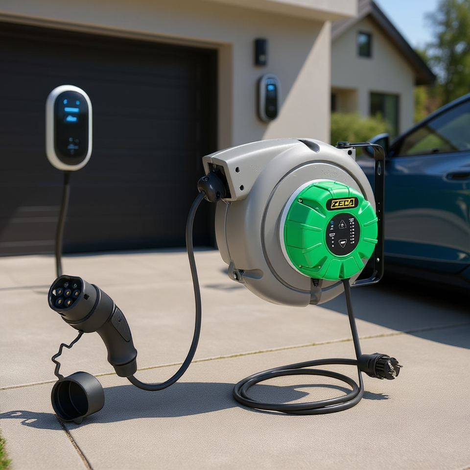 Caractéristiques:Enrouleur de câble rétractable, mural, pour recharge de véhicules électriques