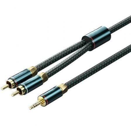Câble audio - câble de 1 m avec connecteur 2x RCA mâle et jack 3,5 mâle, couleurs vert et noir, idéal pour les connexions audio.