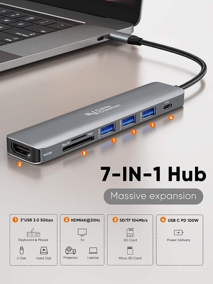 CableCreation 7-en-1 USB C Hub Adaptateur multiport vers adaptateur usb station d'accueil pour ordinateur portable hub usb-c