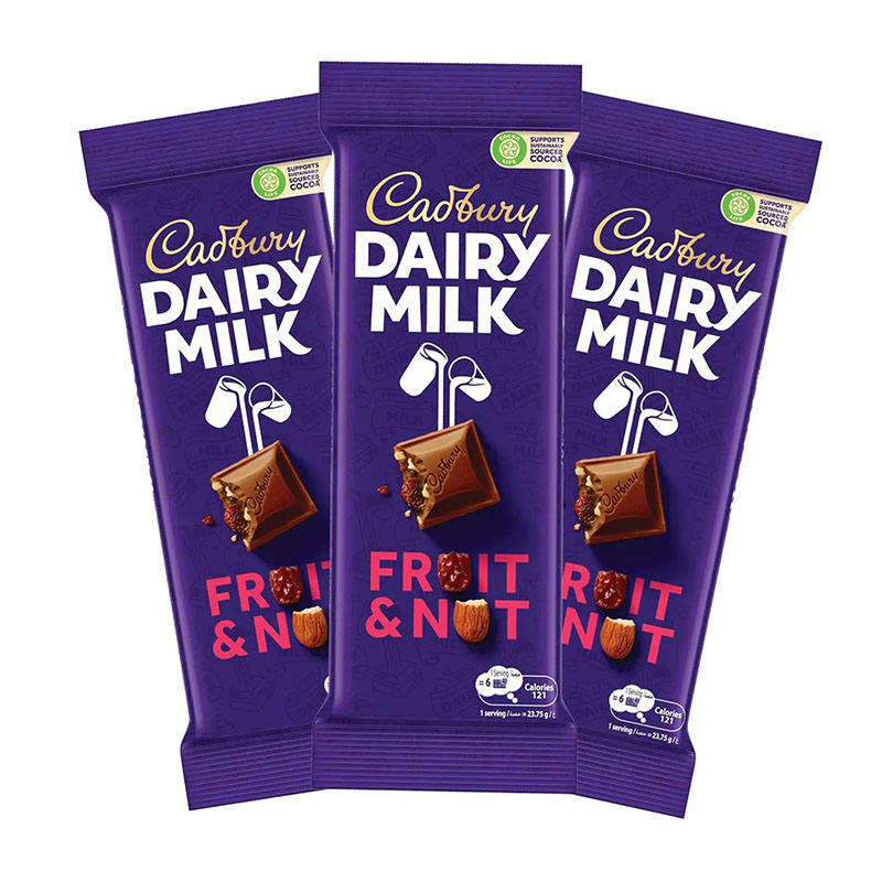 Barre de chocolat au lait Cadburyy avec fruits et noix riche saveur de cacao en gros Snack Export Factory Supply Bulk Buyer