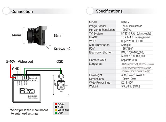 Caméra Micro Caddx Ratel 2 pour Drone de Course FPV, 165 FOV, 2.1mm, Commutable NTSC/PAL, 16:9/4:3, HDR, Vision Nocturne, Accessoires pour Drone