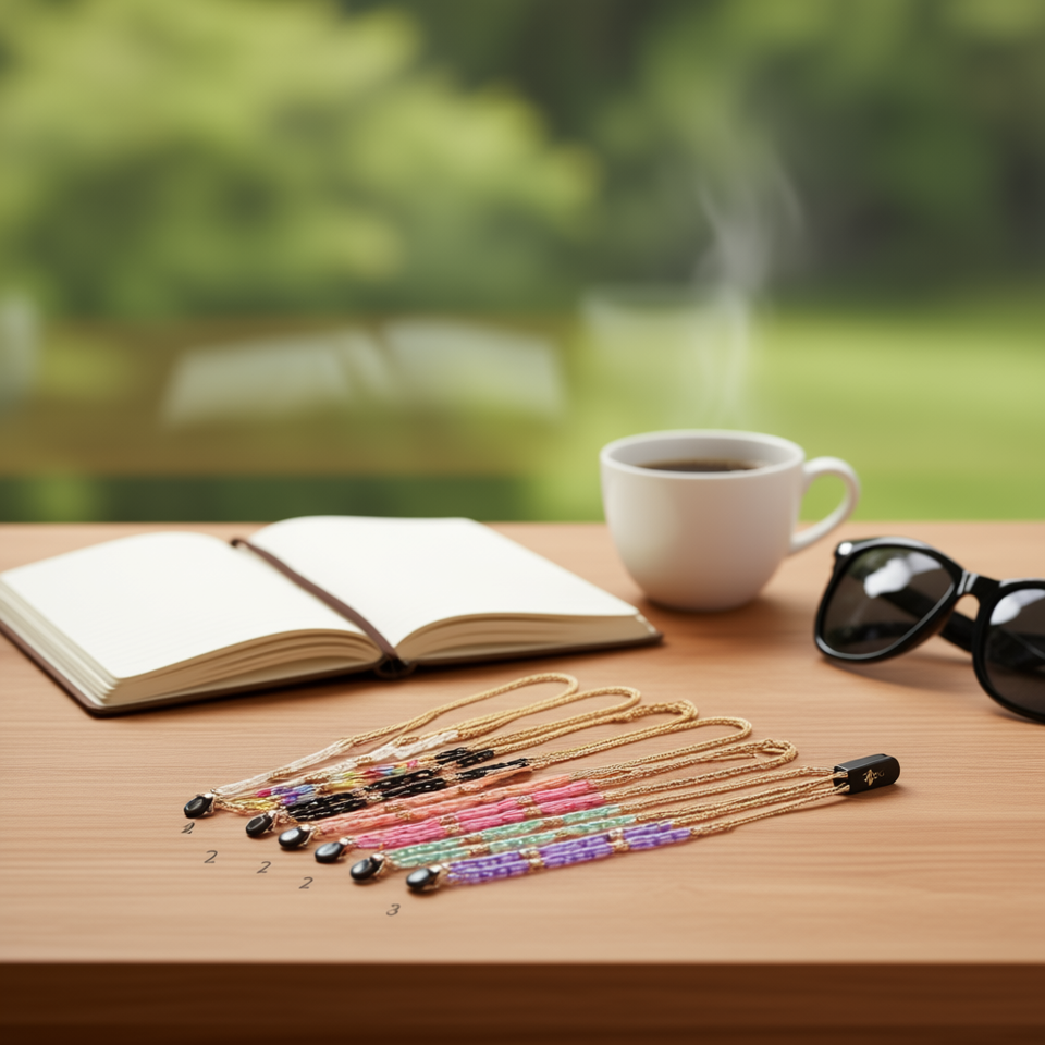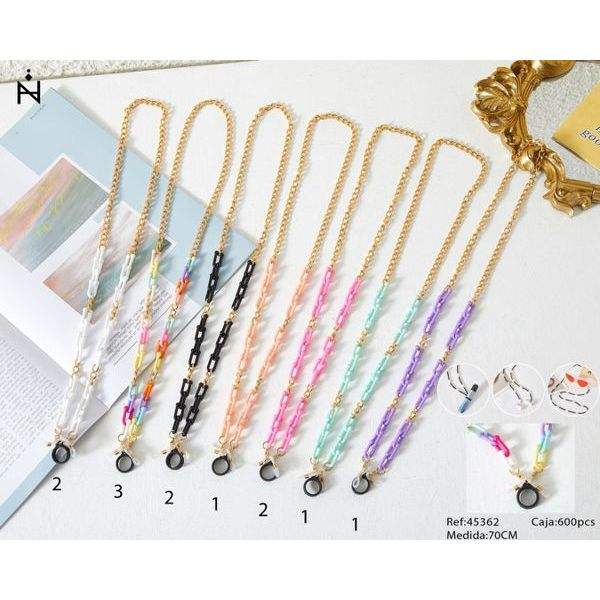 Chaîne pour lunettes Angelina, large de 70 cm, trois en un, en métal léger, sangle de cou pour accessoires de lunettes