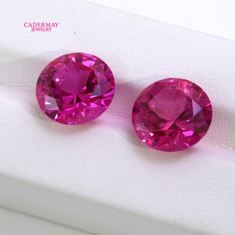 Cadermay Lab Created Rose Red Ruby Round Loose Gemstone For Jewelry Making
