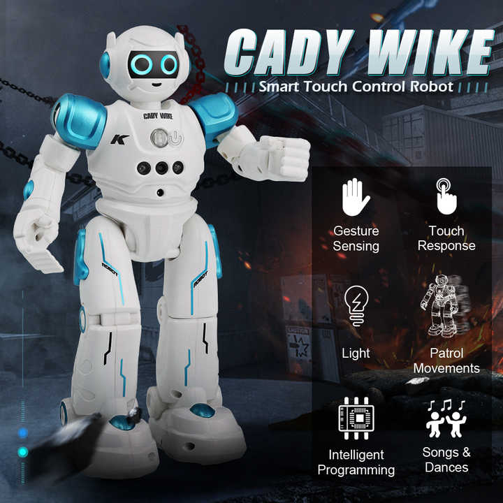 Robot Cady Wike : Détection gestuelle + Télécommande infrarouge, Patrouille et évitement d'obstacles + Interaction sonore et lumineuse, Jouet électrique pour enfants