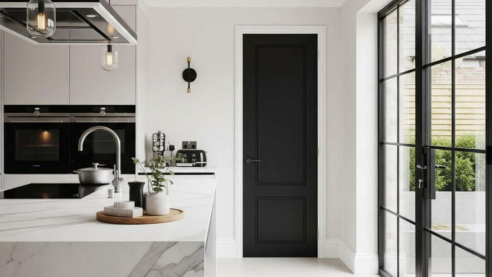 Porte Caesar WPC-QN sans cadre, moderne, étanche, à ouverture latérale, en bois composite, porte d'entrée en PVC, salle de bain