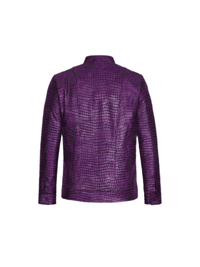 Blouson motard en cuir véritable texturé croco violet Cafe Racer