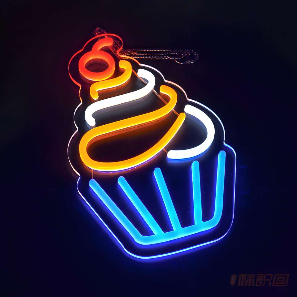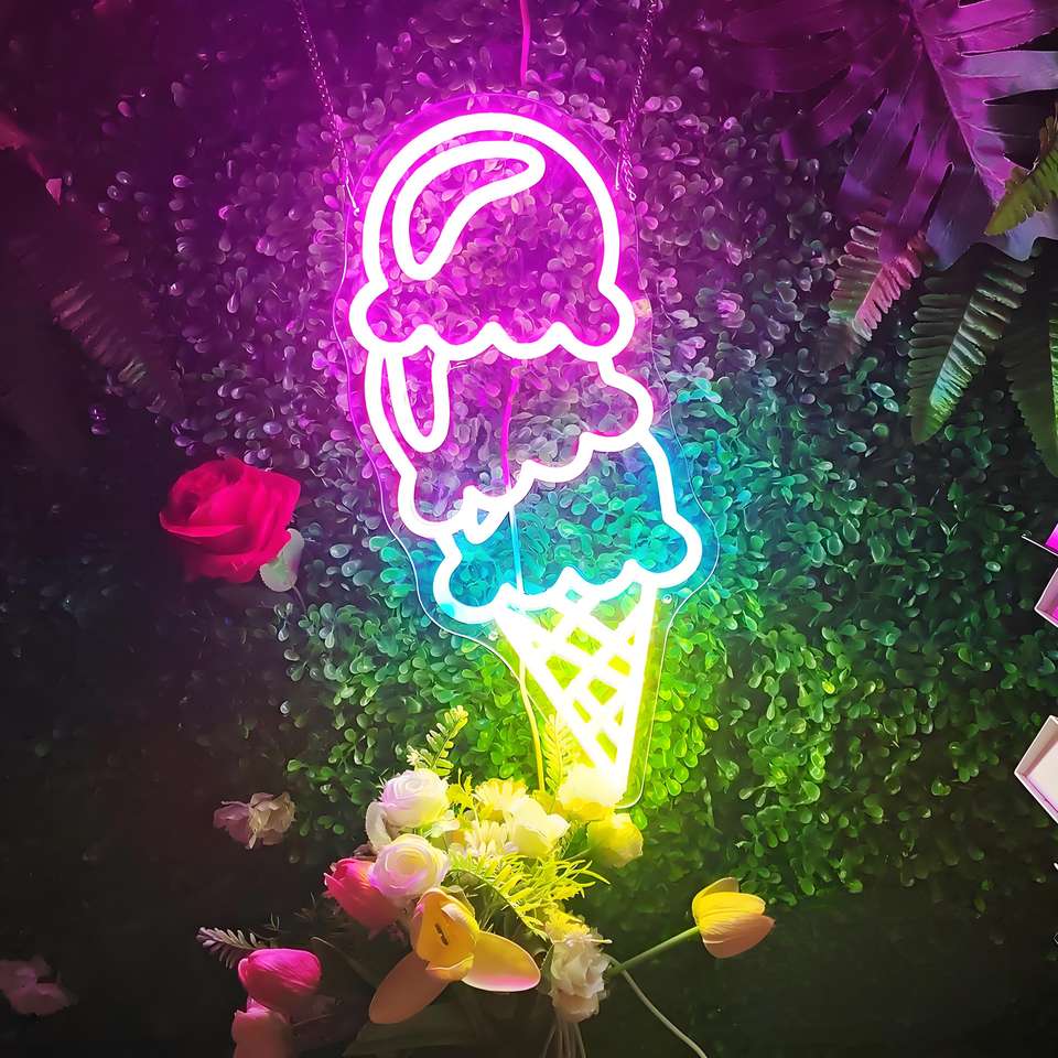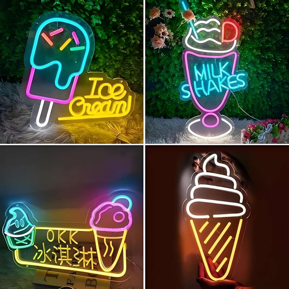 Enseigne néon lumineuse LED en acrylique colorée pour gâteaux et glaces, idéale pour la décoration de magasins et entreprises de crème glacée