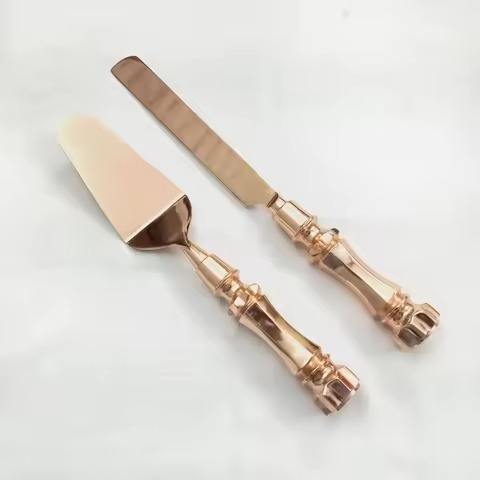 Serveur à gâteau avec poignée dorée, élégant et polyvalent pour servir les desserts