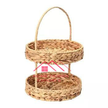 Support de service à gâteau pour se divertir Style classique écologique 2 niveaux Jute naturel et rotin de canne