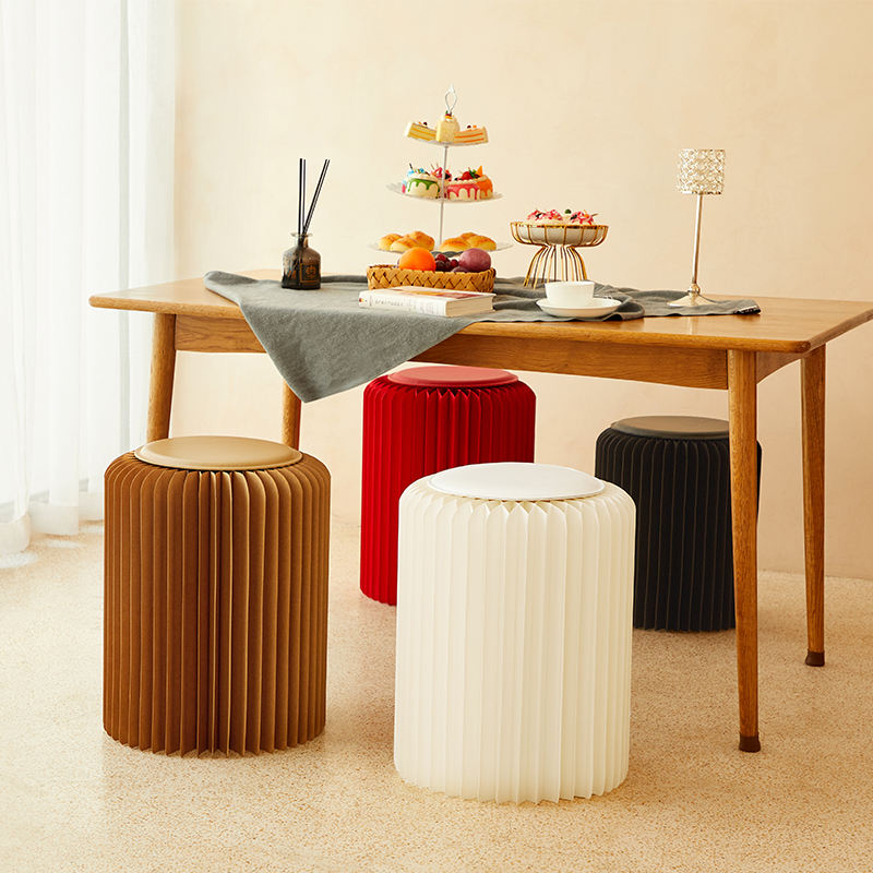 Callfeny – meubles en papier de décoration d'intérieur, chaise cylindrique pliante en papier, tabouret en papier avec tapis